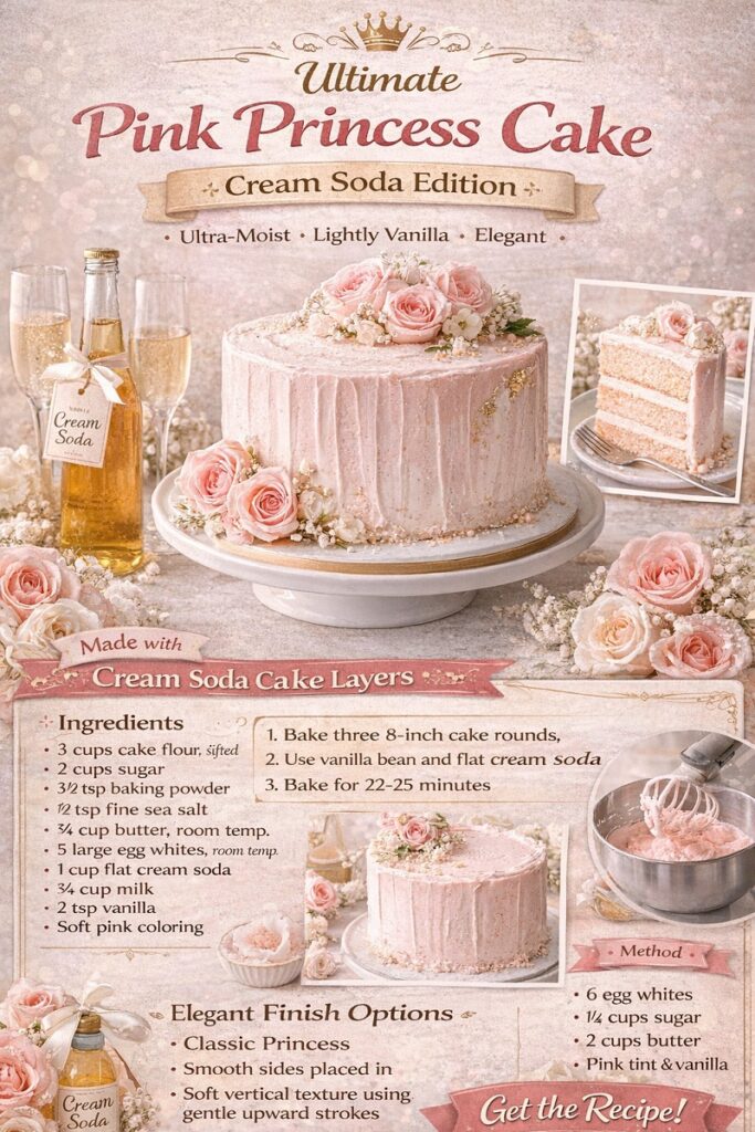 Here’s the recipe for making the Ultimate Pink Princess Cake, elevated with cream soda for a delicate vanilla-caramel lift and an exceptionally tender crumb.