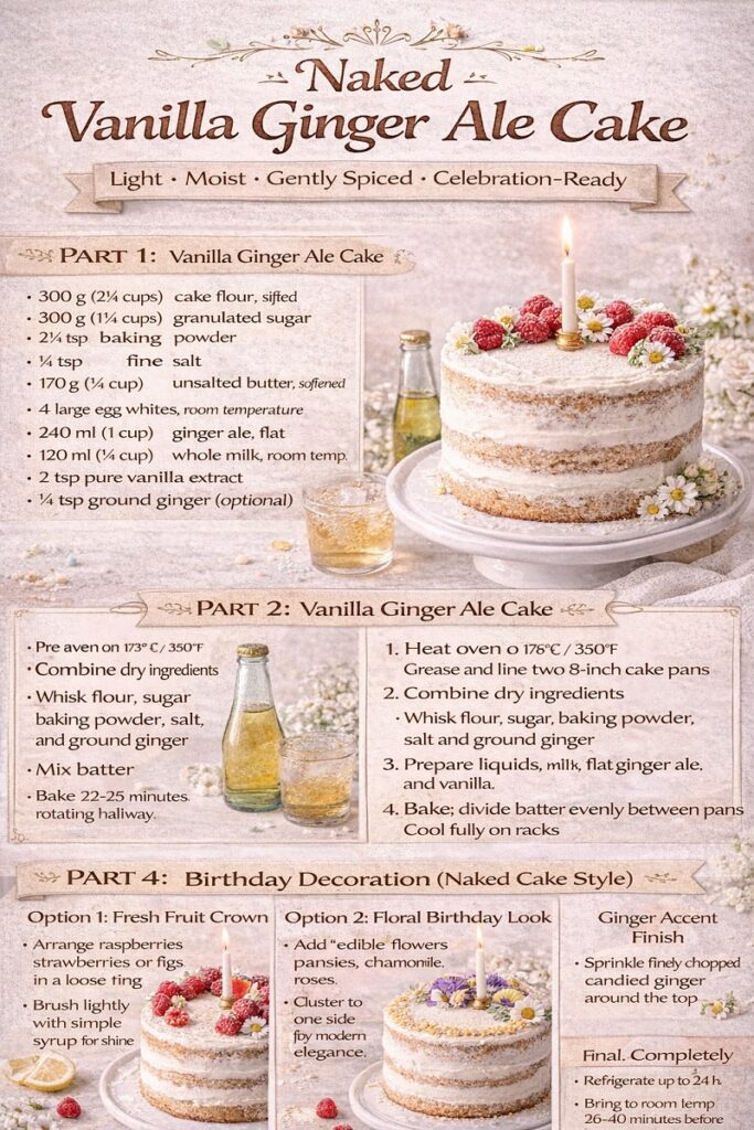 “Naked” Vanilla Ginger Ale Cake for Birthday Celebration